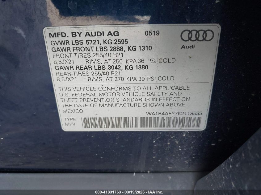 2019 AUDI SQ5 2019 Gasoline, 3.0, Full drive, VIN - WA1B4AFY7K2****** from the USA