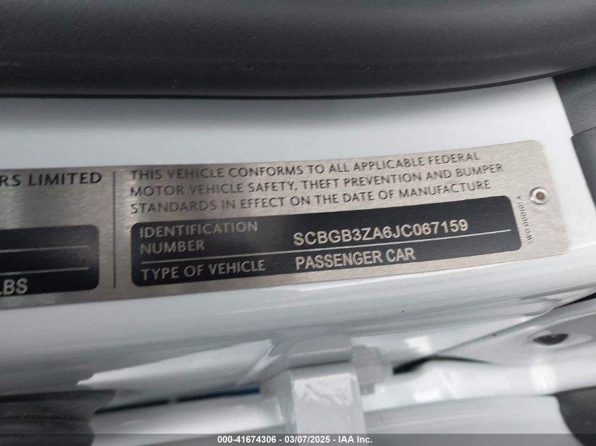 Color WhiteCylinders 12Drive Full driveVIN SCBGB3ZA6JC******State Run & Drive VerifiedDamage It is unknown AutoRIA