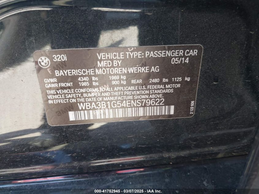2014 BMW 3 SERIES 2014 Gasoline, 2.0, Rear wheel drive, VIN - WBA3B1G54EN****** from the USA