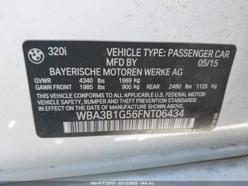 2015 BMW 3 SERIES 2015 Gasoline, 2.0, Rear wheel drive, VIN - WBA3B1G56FN****** from the USA
