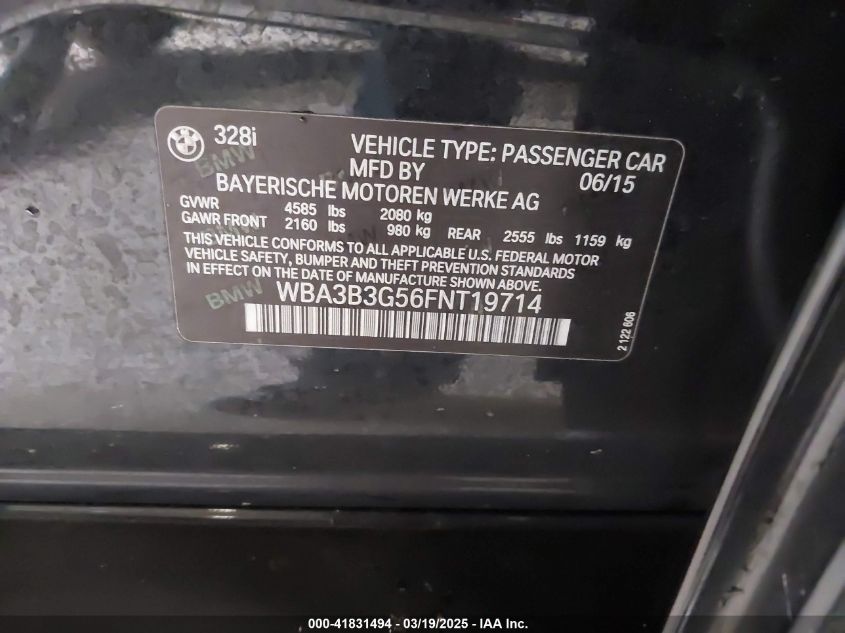 2015 BMW 3 SERIES 2015 Gasoline, 2.0, Full drive, VIN - WBA3B3G56FN****** from the USA