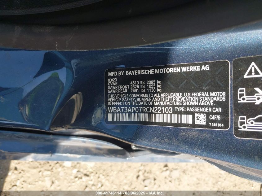 2024 BMW 4 SERIES 2024 Gasoline, 2.0, Full drive, VIN - WBA73AP07RC****** from the USA