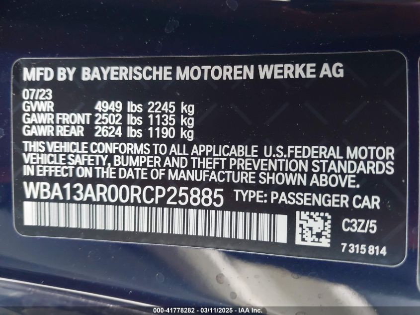 2024 BMW 4 SERIES 2024 Gasoline, 3.0, Full drive, VIN - WBA13AR00RC****** from the USA