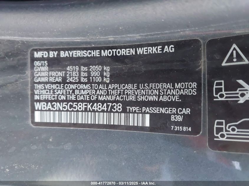 Color GrayCylinders 4Drive Full driveVIN WBA3N5C58FK******State Run & Drive VerifiedDamage Front rightAuction date 2025-03-24 AutoRIA