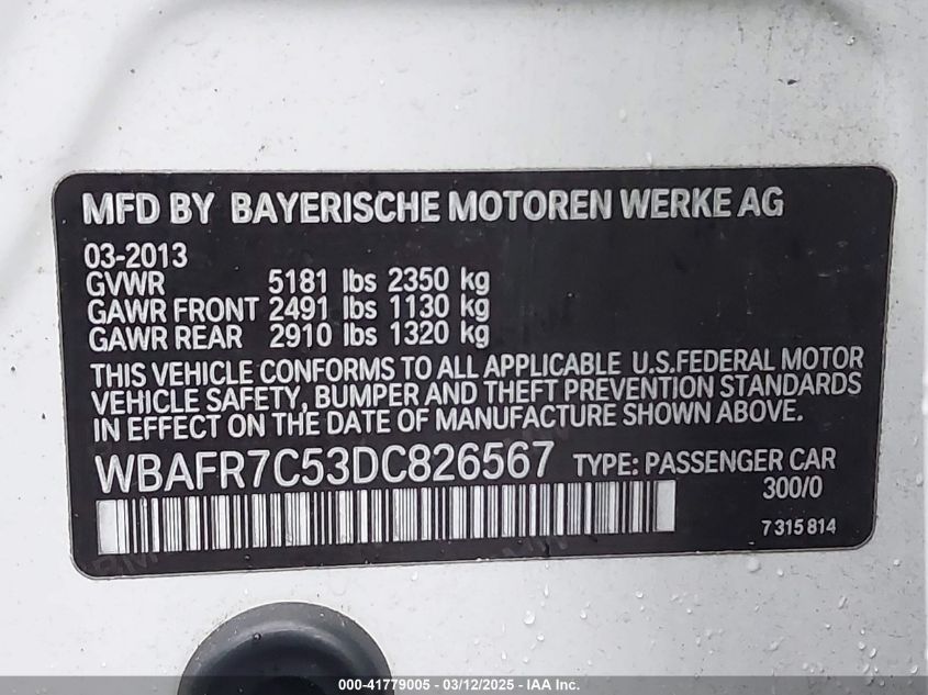 Color WhiteCylinders 6Drive Rear wheel driveVIN WBAFR7C53DC******State Run & Drive VerifiedDamage Front or backAuction date 2025-03-20 AutoRIA