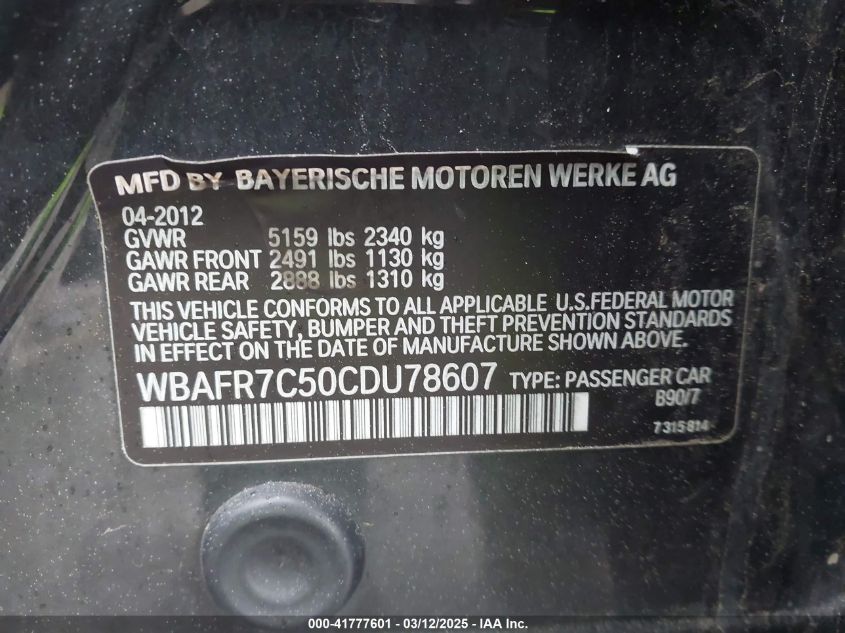 Color BlackCylinders 6Drive Rear wheel driveVIN WBAFR7C50CD******State Run & Drive VerifiedDamage BottomAuction date 2025-03-26 AutoRIA