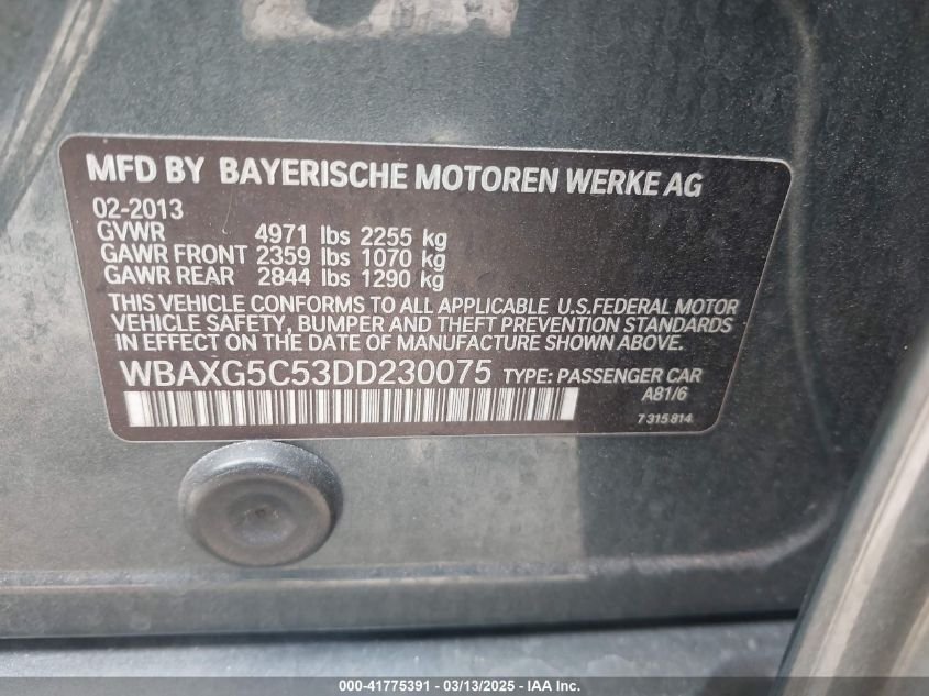 2013 BMW 5 SERIES 2013 Gasoline, 2.0, Rear wheel drive, VIN - WBAXG5C53DD****** from the USA
