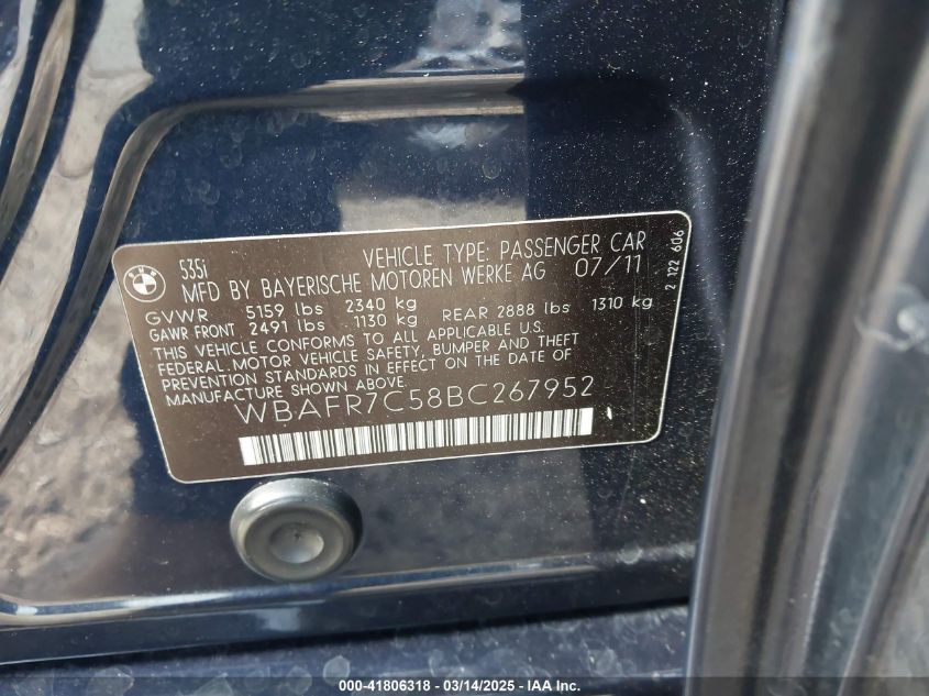2011 BMW 5 SERIES 2011 Gasoline, 3.0, Rear wheel drive, VIN - WBAFR7C58BC****** from the USA