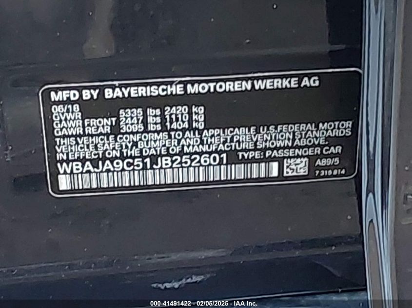 2018 BMW 5 SERIES 2018 Hybrid, 2.0, Rear wheel drive, VIN - WBAJA9C51JB****** from the USA