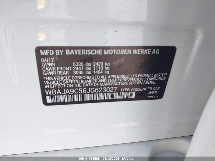 Color WhiteCylinders 4Drive Rear wheel driveVIN WBAJA9C56JG******State Run & Drive VerifiedDamage Left side AutoRIA