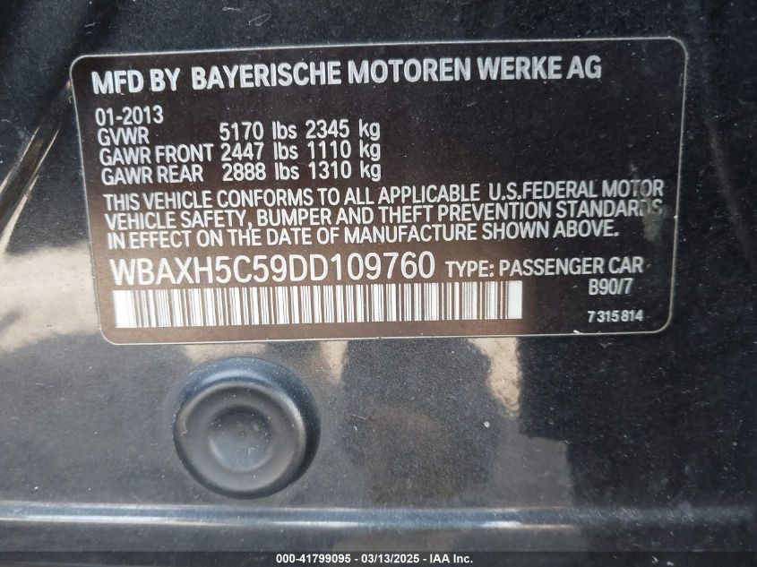 Color BlackCylinders 4Drive Full driveVIN WBAXH5C59DD******State Run & Drive VerifiedDamage Front or back AutoRIA