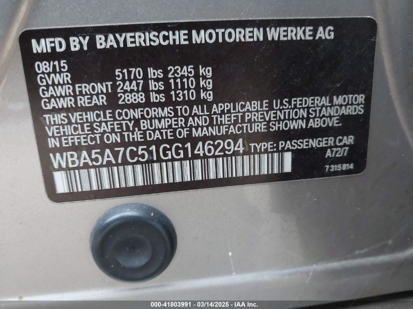2016 BMW 5 SERIES 2016 Gasoline, 2.0, Full drive, VIN - WBA5A7C51GG****** from the USA