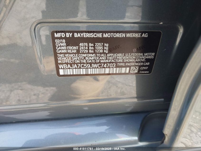2018 BMW 5 SERIES 2018 Gasoline, 2.0, Full drive, VIN - WBAJA7C59JW****** from the USA