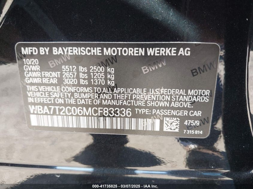 2021 BMW 7 SERIES 2021 Gasoline, 3.0, Rear wheel drive, VIN - WBA7T2C06MC****** from the USA