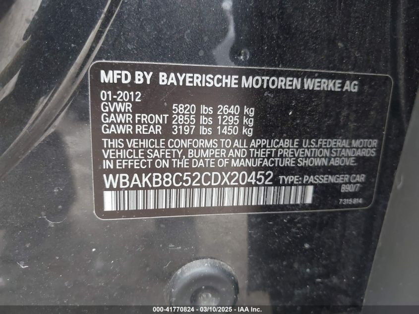 Color GrayCylinders 8Drive Rear wheel driveVIN WBAKB8C52CD******State Run & Drive VerifiedDamage InsignificantAuction date 2025-03-24 AutoRIA