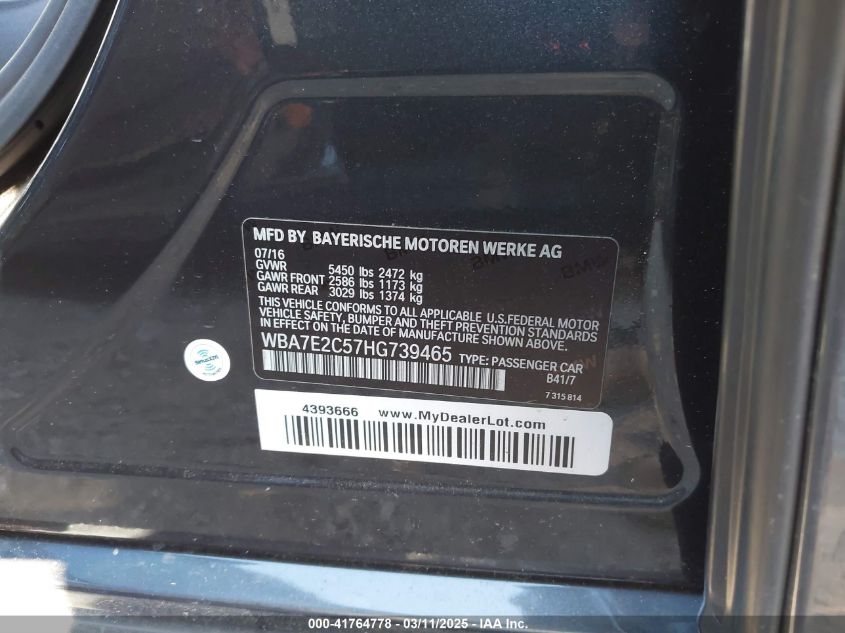 2017 BMW 7 SERIES 2017 Gasoline, 3.0, Rear wheel drive, VIN - WBA7E2C57HG****** from the USA