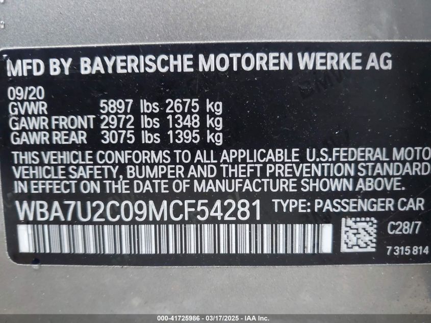2021 BMW 7 SERIES 2021 Gasoline, 4.4, Full drive, VIN - WBA7U2C09MC****** from the USA