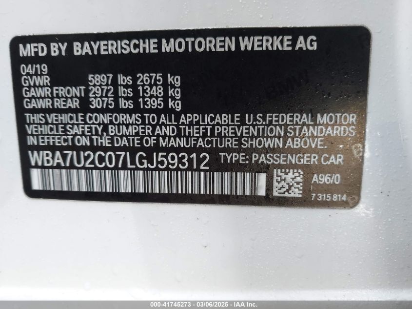 2020 BMW 7 SERIES 2020 Gasoline, 4.4, Full drive, VIN - WBA7U2C07LG****** from the USA