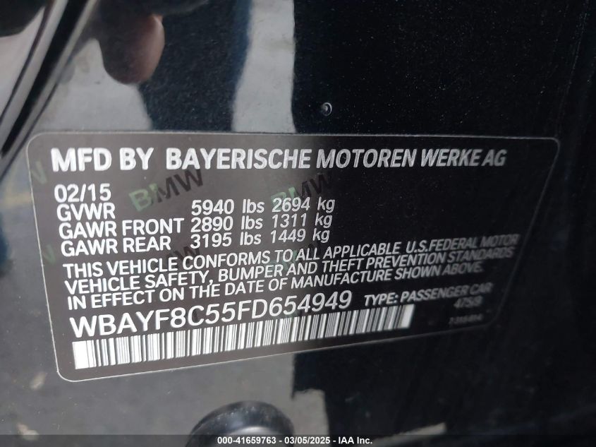 2015 BMW 7 SERIES 2015 Gasoline, 4.4, Full drive, VIN - WBAYF8C55FD****** from the USA