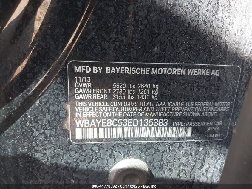Color BlackCylinders 8Drive Rear wheel driveVIN WBAYE8C53ED******State Run & Drive VerifiedDamage BackAuction date 2025-03-20