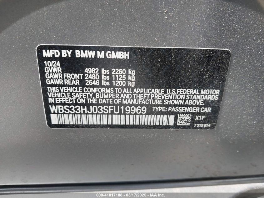 2025 BMW M3 2025 Gasoline, 3.0, Full drive, VIN - WBS33HJ03SF****** from the USA