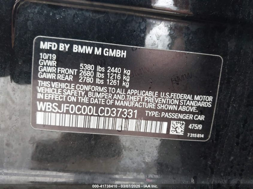 2020 BMW M5 2020 Gasoline, 4.4, Full drive, VIN - WBSJF0C00LC****** from the USA