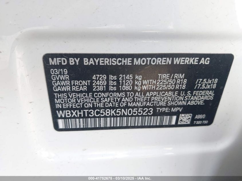 Color WhiteCylinders 4Drive Full driveVIN WBXHT3C58K5******State Run & Drive VerifiedDamage Front left AutoRIA