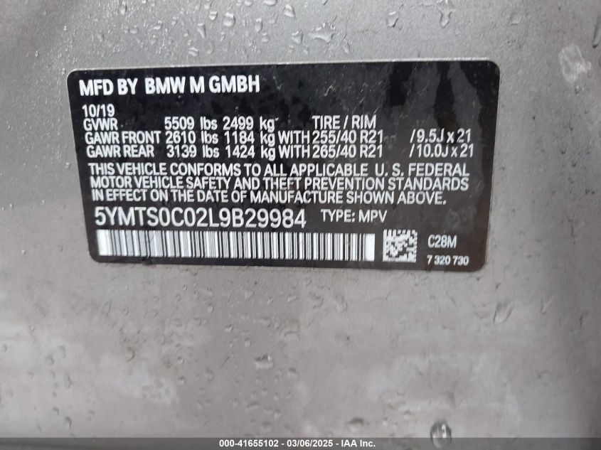 2020 BMW X3 M 2020 Gasoline, 3.0, Full drive, VIN - 5YMTS0C02L9****** from the USA