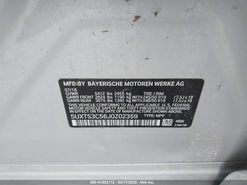 2018 BMW X3 2018 Gasoline, 3.0, Full drive, VIN - 5UXTS3C56J0****** from the USA