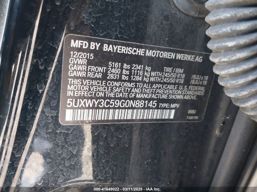 Color BlackCylinders 4Drive Full driveVIN 5UXWY3C59G0******State Run & Drive VerifiedDamage It is unknownAuction date 2025-03-25 AutoRIA