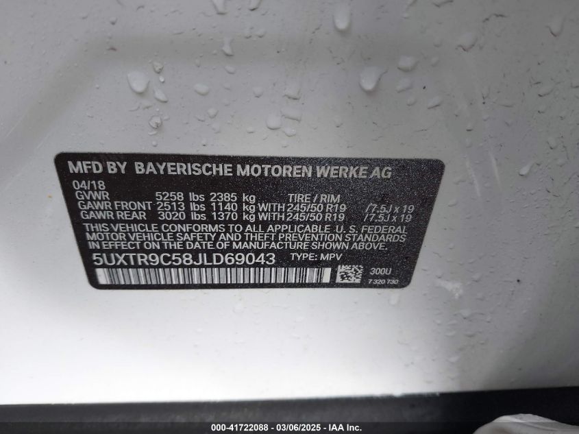 2018 BMW X3 2018 Gasoline, 2.0, Full drive, VIN - 5UXTR9C58JL****** from the USA