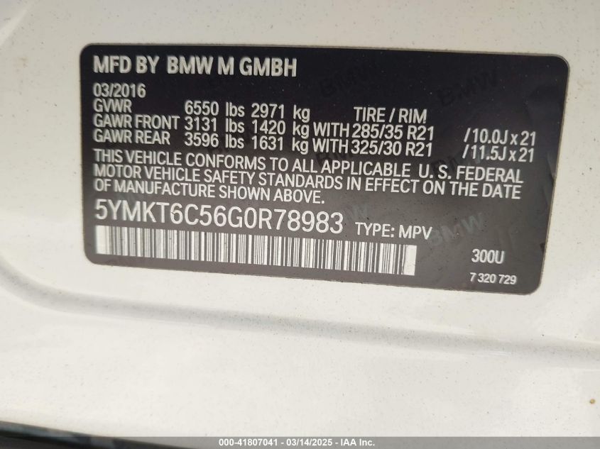 2016 BMW X5 M 2016 Gasoline, 4.4, Full drive, VIN - 5YMKT6C56G0****** from the USA