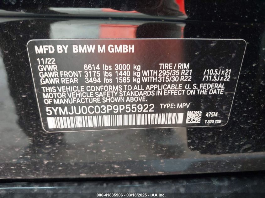 2023 BMW X5 M 2023 Gasoline, 4.4, Full drive, VIN - 5YMJU0C03P9****** from the USA