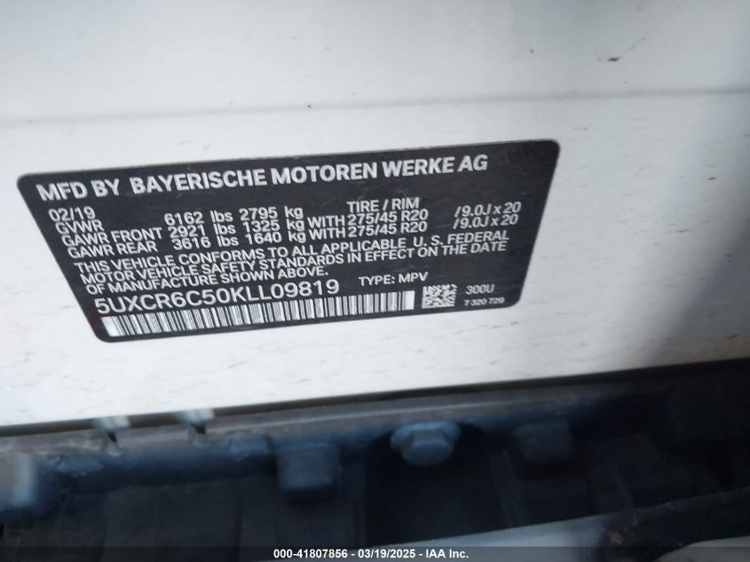 2019 BMW X5 2019 Gasoline, 3.0, Full drive, VIN - 5UXCR6C50KL****** from the USA