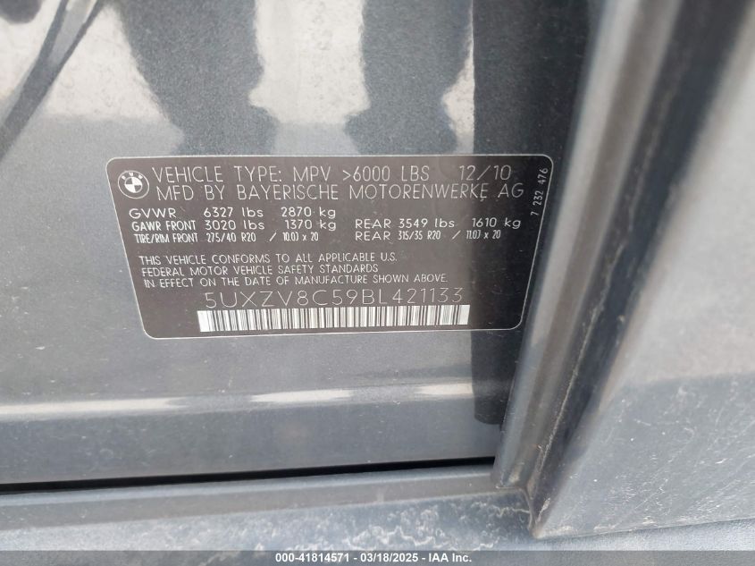 Color BlackCylinders 8Drive Full driveVIN 5UXZV8C59BL******State Run & Drive VerifiedDamage Front or backAuction date 2025-03-24 AutoRIA
