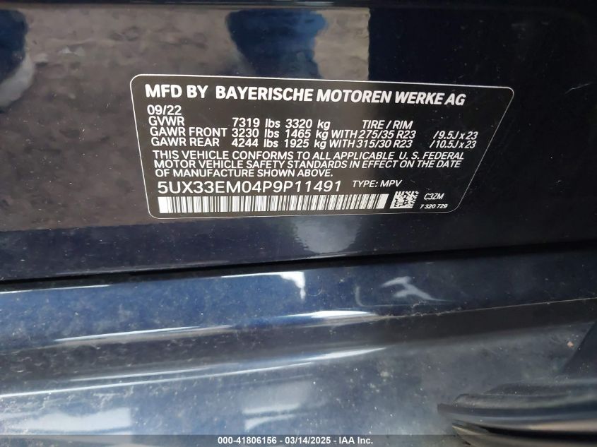 2023 BMW X7 2023 Gasoline, 4.4, Full drive, VIN - 5UX33EM04P9****** from the USA