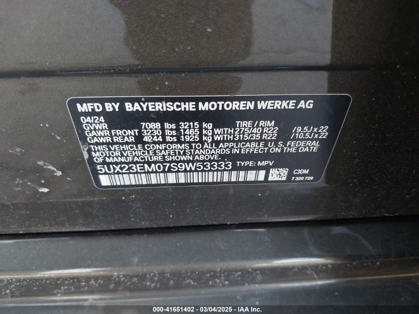 2025 BMW X7 2025 Gasoline, 3.0, Full drive, VIN - 5UX23EM07S9****** from the USA