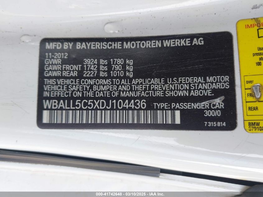 Color WhiteCylinders 4Drive Rear wheel driveVIN WBALL5C5XDJ******State Run & Drive VerifiedDamage Front right