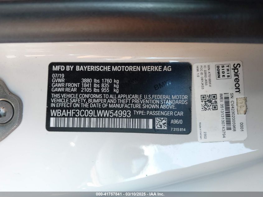 Color WhiteCylinders 4Drive Rear wheel driveVIN WBAHF3C09LW******State Run & Drive VerifiedDamage Right side