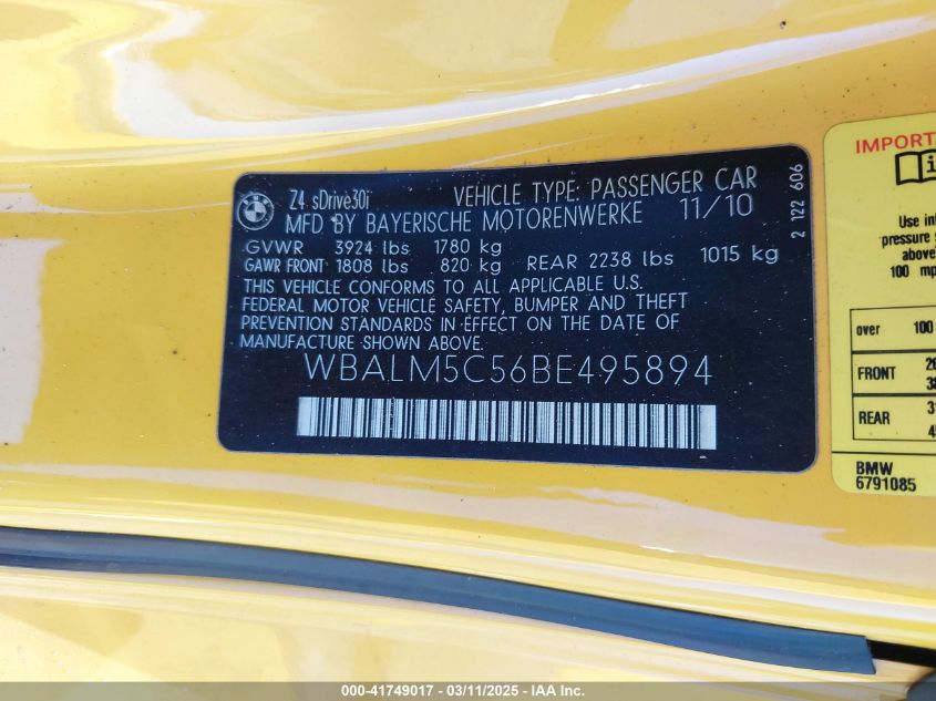 2011 BMW Z4 2011 Gasoline, 3.0, Rear wheel drive, VIN - WBALM5C56BE****** from the USA