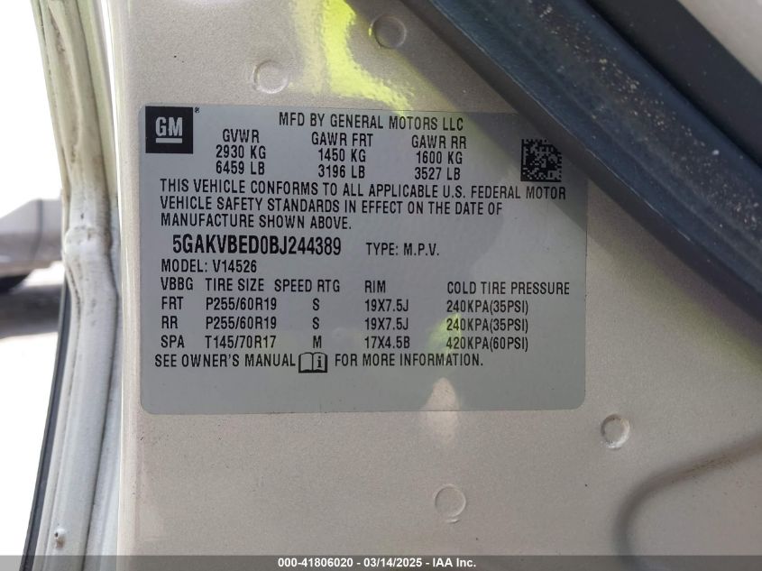 Color SunburnCylinders 6Drive Full driveVIN 5GAKVBED0BJ******State Run & Drive VerifiedDamage Front or back
