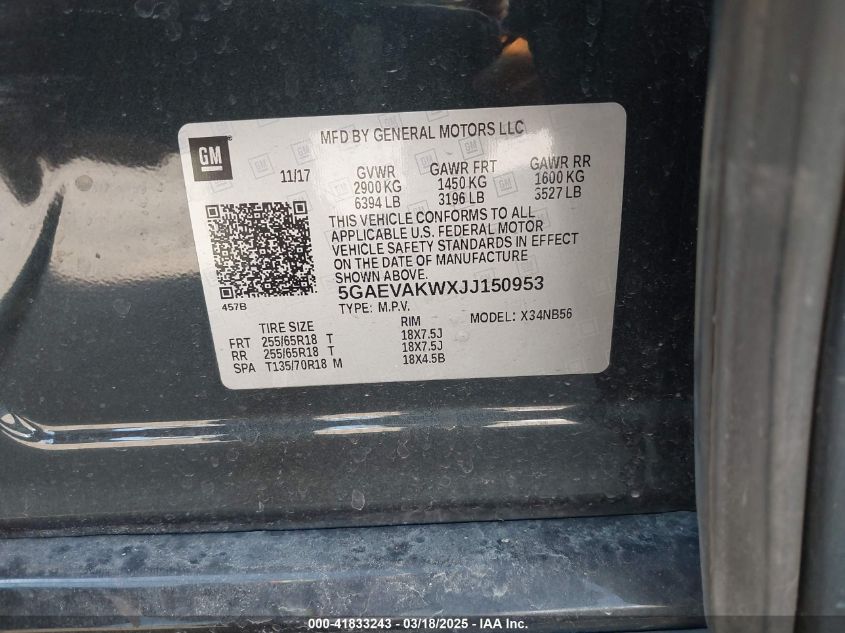 Color GrayCylinders 6Drive Full driveVIN 5GAEVAKWXJJ******State Run & Drive VerifiedDamage Front or back AutoRIA