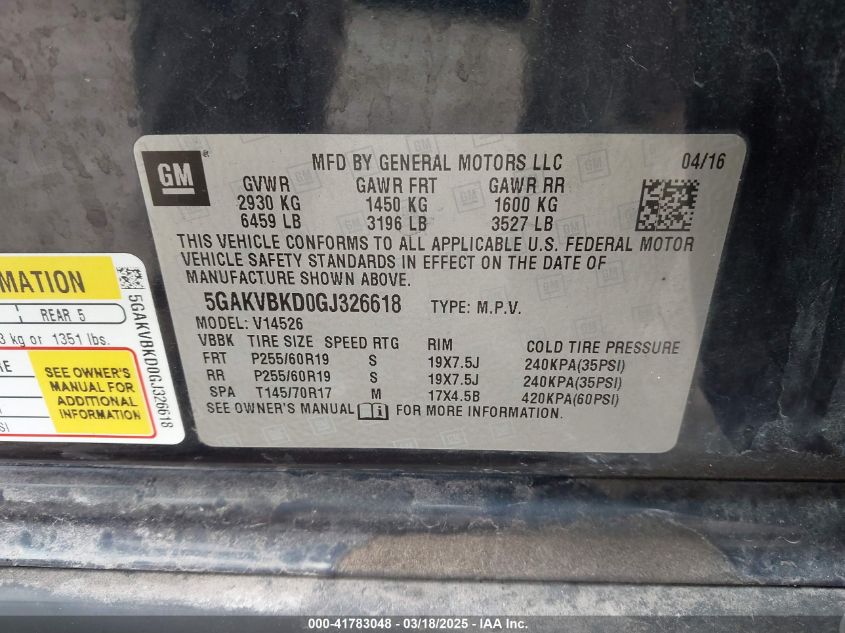 Color BlueCylinders 6Drive Full driveVIN 5GAKVBKD0GJ******State Run & Drive VerifiedDamage Left side AutoRIA