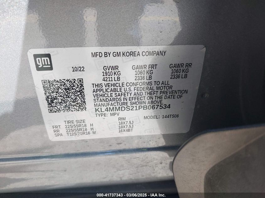 Color GrayCylinders 3Drive Front wheel driveVIN KL4MMDS21PB******State Run & Drive VerifiedDamage Front or back