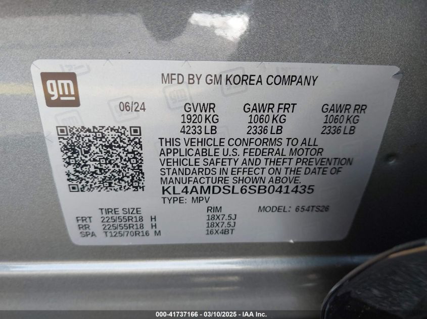 Color GrayCylinders 3Drive Front wheel driveVIN KL4AMDSL6SB******State Run & Drive VerifiedDamage Right side