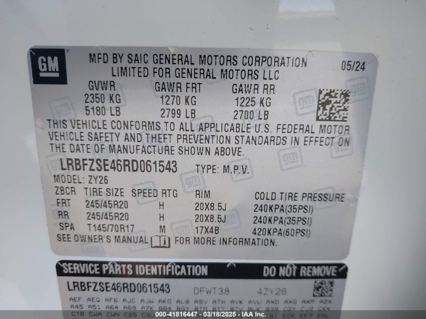 Color WhiteCylinders 4Drive Full driveVIN LRBFZSE46RD******State Run & Drive VerifiedDamage Front right