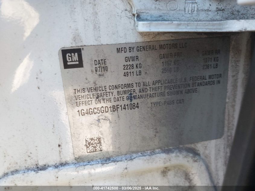 Color WhiteCylinders 6Drive Front wheel driveVIN 1G4GC5GD1BF******State Run & Drive VerifiedDamage InsignificantAuction date 2025-03-20