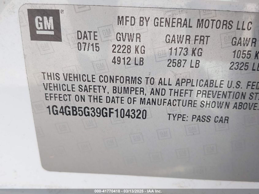 Color WhiteCylinders 6Drive Front wheel driveVIN 1G4GB5G39GF******State Run & Drive VerifiedDamage Front or back AutoRIA