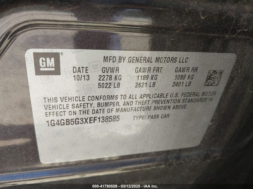 2014 BUICK LACROSSE 2014 Gasoline, 3.6, Front wheel drive, VIN - 1G4GB5G3XEF****** from the USA