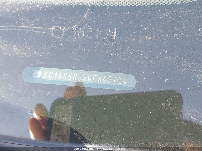 Color WhiteCylinders 6Drive Full driveVIN 1G4GG5G33CF******State Run & Drive VerifiedDamage Front leftAuction date 2025-03-24 AutoRIA